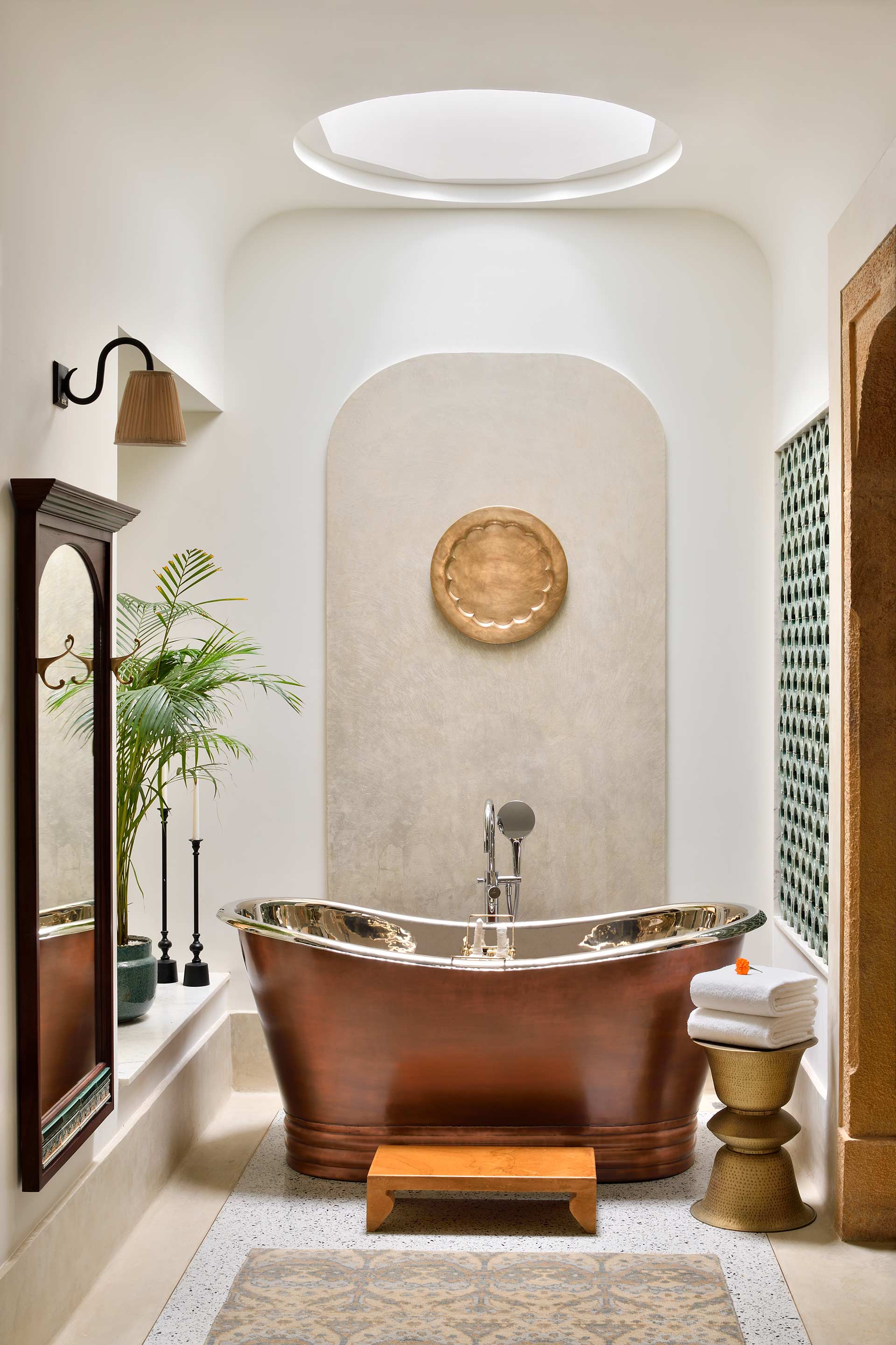 Amidst the golden sands of the desert lies your regal retreat—an exquisite stay awaits. Suryagarh's elegantly appointed rooms seamlessly blend historic charm with contemporary comforts, offering guests a cozy sanctuary complete with views from private verandas and enchanting turret balconies. Each space is thoughtfully designed for those seeking relaxation and an exquisite touch of elegance under the desert sky.
